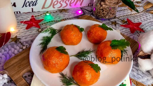Новогодние "Мандаринки" — эффектная и простая в приготовлении закуска. Выглядят "Мандаринки" ярко, аппетитно и празднично! Совсем, как настоящие)