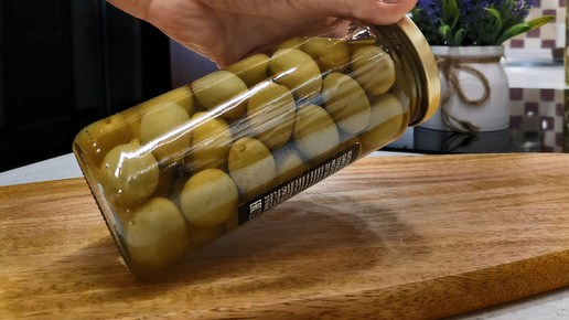 На Новый год такая закуска улетит на ура. Делать советую сразу много. По опыту никогда не остается и гости выспрашивают где взяла, да сколько стоит. А закуска не такая дорогая, как может показаться. С тех пор как подсмотрела и попробовала ее на банкете в одном известном ресторане только так оливки на праздничный стол и подаю. Рецепт обалдеть какой эффектный и вкусный. Итак, сегодня готовим закуску, как вы поняли, из оливок. Вот из самых обычных зеленых в баночке. Можно с косточкой, можно без, можно из крупных, а можно и из самых маленьких...