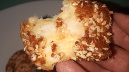Сегодня хочу вам предложить рецепт закуски, которая отлично подходить к пенному и праздничному столу, удивите своих гостей и близких такой подачей сыра с орехами. Сыр для этой закуски берем абсолютно любой и нарезаем кубиком. В каждый кубик нашпинговать арахис. Приготовить кляр: в одной миске взбитое яйцо, а во второй сухари с кунжутом. Сырный кубик сначала обмокнуть в яйцо, затем в сухари. Сухари я делаю сама, перед тем, как готовить это блюдо, я беру пару кусочков булки и засушиваю на батарее...
