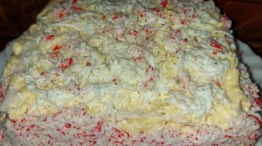 Закусочный торт "Снегурочка" Готовила в прошлом году на праздный стол, оценили все. И за вечер весь тортик и съели. В этом году буду готовить снова! Нам потребуется: крабовые палочки - 250 грамм; яйца куриные - 4 штуки.; сыр твёрдый - 200 грамм; майонез - 3 столовой ложки; чеснок - 2 зубчика. Сыр натрите на мелкой тёрке, выложите в глубокую миску, сюда же пропустите через пресс (или натрите) зубчики чеснока. Куриные яйца отварите вкрутую (на отваривание с момента закипания воды потребуется минут 9-10), затем полностью остудите их и очистите...