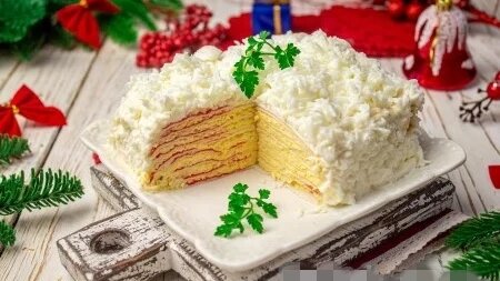 Закусочный торт из крабовых палочек "Снегурочка" для новогоднего стола