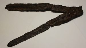 Кованый железный меч эпохи викингов был обнаружен летом 1982 года в центре Замкового острова на территории Кузнечного двора. Археологические раскопки проводились Ленинградским отделением Института археологии АН СССР под руководством Вячеслава Тюленева. Как рассказали в международном центре реставрации, меч является одним из наиболее значимых предметов среди археологических находок того периода. Клинок не имел рукояти, был согнут и состоял из двух фрагментов лезвия. На мече фрагментарно сохранились надписи на латинском языке, указывающие на имя мастера, изготовившего оружие...