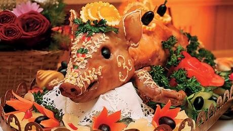 Молочный поросенок запеченный в духовке смотрится на праздничном столе очень эффектно и служит его рашением. Это блюдо всегда символизировало достаток и изобилие в семье.Молочными называют двух — трехмесячных поросят, еще сосущих матку. Блюда из них отличаются нежностью мяса и тонким ароматом. Советов по приготовлению молочного поросенка очень много: он готовится и с начинкой, и без; на вертеле и в духовке; кусками и целиком; на сковороде и на гриле. Предлагаю один из рецептов запеченного молочного поросенка целиком...