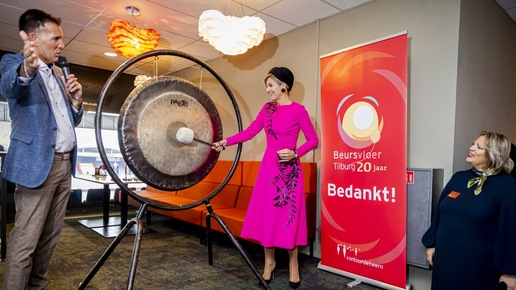 Женщина-праздник ударила в гонг и открыла юбилейную , 20-ю выставку-ярмарку Beursvloer Tilburg (Тилбургскую торговую ярмарку). Королева Нидерландов не подвела и выбрала оптимистичный образ. Ее Величество надела платье работы Оскара де ла Ренты. К платью цвета фуксии с черной вышивкой и аппликацией Максима добавила черный клатч и шляпку от бельгийской модистки Фабьен Дельвинь...