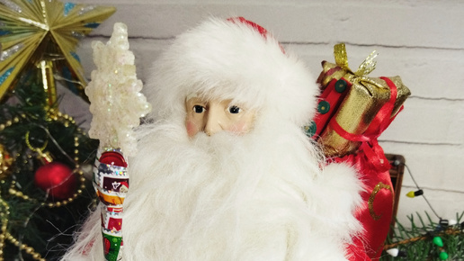 ...В кукольном уголке стояла тишина. До Нового Года оставалось всего несколько часов... Вдруг словно по волшебству в центре комнаты появилась фигура в красной шубе и шапке. За плечами у гостя был красный мешок с золотым узором, наполненный подарками. В руке он держал посох, на конце которого переливалась всеми цветами радуги будто хрустальная звезда. У таинственного незнакомца была густая белая борода до пояса, а в глазах светились веселые искорки. Гость рассматривал комнату, ёлку и что-то бормотал себе под нос...