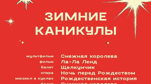 🎬 Пересматриваем любимый «Ла-Ла Ленд», «Снежную королеву» и театральные постановки этого сезона. ☢️ Новогодняя программа и билеты на сайте