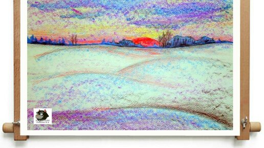Рисуем зимний пейзаж цветными карандашами поэтапно