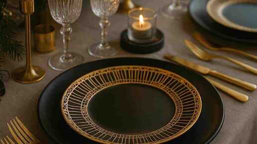 Сочетание черного и золотого — это вневременная классика, которая мгновенно придает элегантность и превращает любой стол в место, наполненное волшебством полуночи. От мерцающих акцентов до эффектных деталей, это сочетание цветов передает роскошь и предвкушение обратного отсчета. Планируете ли вы романтический ужин или праздничную вечеринку, эти идеи вдохновят вас на оформление стола, который поразит ваших гостей и будет сиять еще долго после полуночи...