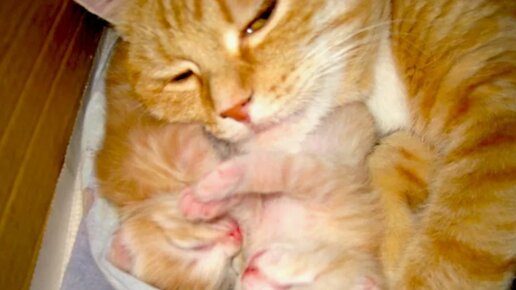 Кошка родила 4 котят, но когда пришли хозяева, то увидели еще одного малыша, который был совсем не котиком