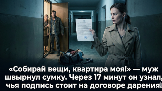 «Собирай вещи, квартира моя!» — муж швырнул сумку. Через 17 минут он узнал, чья подпись стоит на договоре дарения
