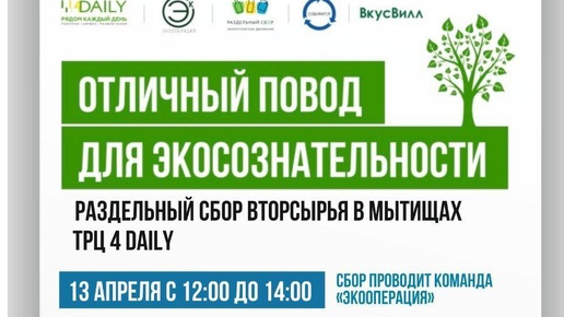 Замкадье | Подмосковье | Мытищи9 месяцев назадПодписатьсяВ ответ на постВ ответ на пост Через час начало. Мытищи ТРЦ "4 Daily" ⚠️Можно сдать практически любое вторсырьё кроме шин и ёлок.