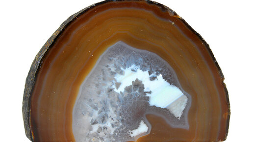 Агат, это полупрозрачная разновидность микрокристаллического кварца. Его используют как полудрагоценный камень, когда он подходит по качеству и цвету. Агат обычно образуется в результате осаждения кремнезема из подземных вод в полостях магматических пород. Агат осаждается концентрическими слоями вокруг стенок полости или горизонтальными слоями, поднимающимися со дна полости. Эти структуры создают полосатые узоры, характерные для многих агатов. Некоторые из этих полостей усыпаны кристаллами, и они известны как жеоды...