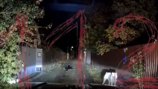При этом огромная собака пыталась сопротивляться ударам палки, но вынуждена была ретироваться.