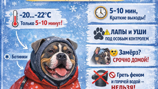 При температурах −18…−25 °C для него это уже не просто дискомфорт, а физиологически опасные условия. Разберёмся, почему именно булли требует отдельного подхода. Даже у «плотных» линий булли шерсть выполняет скорее декоративную, чем термоизолирующую функцию.Тепло теряется быстро, особенно в ветреную погоду...