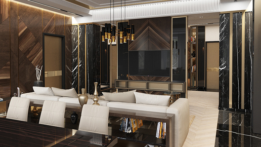 Шикарный дизайн интерьера в стиле Ар-деко. Обзор квартиры с удобной планировкой 100 м2