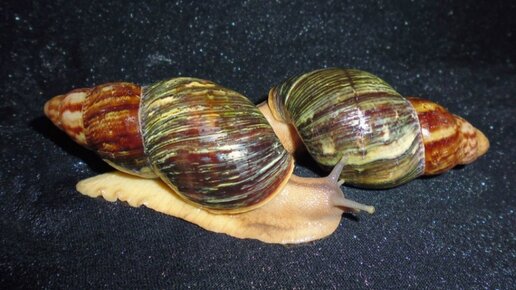 Раковина продолговатая, сама улитка не очень крупная - 7-9 см. Раковина малахитовая, с возрастом цвет становится ярче. Архахатине Папирацее необходим большой террариум, несмотря на маленькие размеры. Нога у улитки сероватая с более тёмной полосой на шее. В клалке 8-12 яиц. Половозрелыми особи становятся примерно в год. Улитка данного вида точно украсит вашу коллекцию, если вы собираетесь её завести. Крупная и массивная раковина. Вырастает 12см и более. Апекс - розово-оранжевый, колумелла пурпурная...