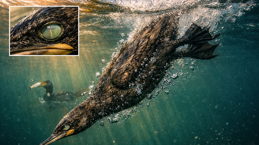 Большой баклан: как птица ныряет на глубину без акваланга