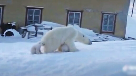 Большой улов218 читали · 4 года назадПодписатьсяБелая медведица защищает медвежат от стаи собак!(Видео)Что-то медведица маленькая или просто собаки такие огромные...!