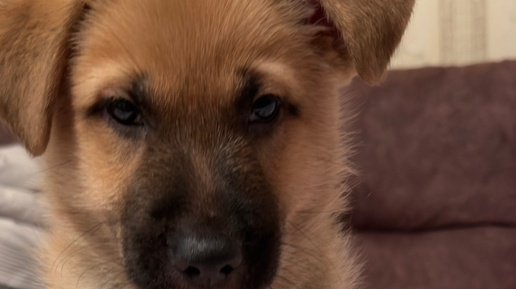 Отдается щенок немецкой овчарки(смесь с дворнягой) в добрые руки(бесплатно).Мальчику полтора месяца,кушает всё и уже почти приучен к