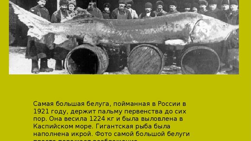 Белуга – одна из крупнейших рыб, встречающихся в реках нашей планеты. Официальные сведения указывают, что она достигает до 4,5 м. в длину и 1500 кг. весом. Однако, бывали случаи, что вылавливали особей вдвое больших размеров...