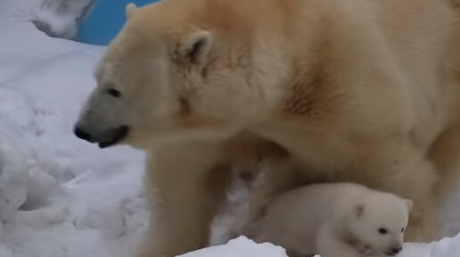 В декабре 2018 года в Новосибирском зоопарке родились медвежата у белой медведицы по имени Герда. Это уже её третьи роды. Малышей и маму никто не беспокоил и в вольер не входили, чтобы условия максимально приближались к природным. И вот мама вывела ребятишек из берлоги. Работники зоопарка стараются не тревожить Герду и даже снег не чистят рядом. У Герды уже появлялось два малыша, один в 2013 году (сейчас живет в Японии), второй в 2015 (живет в Китае)...