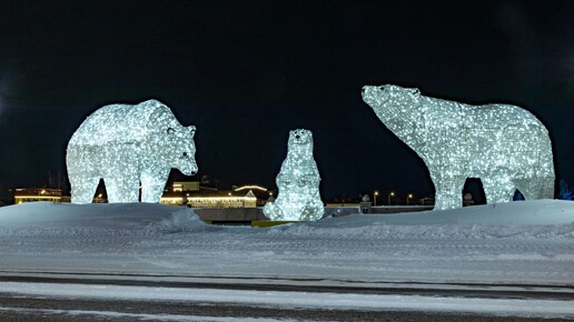 На площади у Ямальской филармонии в Салехарде появилась новая арт-инсталляция. Рядом с главным городским флагштоком установили композицию «Три медведя». Фигуры трех светящихся белых медведей установлены на площади перед зданием Ямальской филармонией, сообщила пресс-служба администрации Салехарда. Новые объекты стали элементами новогоднего оформления города...