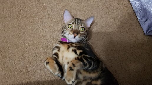Бенгальская мраморная кошка Какой бы сучкой она не была, мы все равно её любим... Всем привет! Сегодня я хочу вам рассказать о своей кошке. Я не буду писать как сильно я ее люблю, и что это самая лучшая кошка во всем мире..все таки у каждого, почти, есть домашнее животное, и для каждого это самое лучшее, что у него только есть.. Полтора года назад меня переклинило. Ведь дома у меня есть собака (Шелти) и попугай (волнистый), а мне захотелось кошку. Муж впринципе не против был и мы начали смотреть авито...