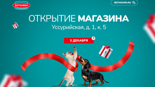 Бетховен - сеть зоомагазинов3 года назадПодписатьсяНОВЫЙ МАГАЗИН "БЕТХОВЕН"Дорогие друзья, приглашаем вас на праздничное открытие нового магазина «Бетховен»! 03 декабря, в субботу С 12:00 до 16:00 ул. Уссурийская, д.1,к5 Приходите всей семьей, Вас ждут: - Аквагрим для детей; -...