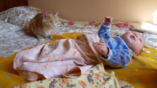 У Гаврюши и Алины разница в возрасте всего год. Когда плачущий свёрток принесли домой и положили на диван — его диван – Гаврюша расположился рядом и начал с любопытством наблюдать, обнюхал детские пальчики и долго не спускал глаз с нового человека в доме. Кот любит детей, обожает расположиться на пелёнке, в детском автомобильном кресле или разлечься в коляске. Любит играть в их игрушки, часами может подпрыгивать за удочкой, когда с ним играют ребятишки, всегда внимательно наблюдает за тем, чем они занимаются...