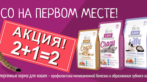 Акция 2+1 на корма Brit Care для кошек