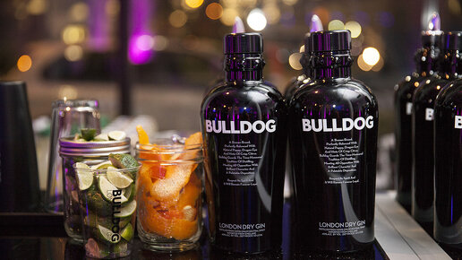 Джин Бульдог появился на рынке в 2006 году. Это сухой английский джин ручного производства Ultra Premium класса, в котором используется широкий набор растительных компонентов из разных уголков планеты. Экзотические растения, например, китайский глаз дракона, семена мака, цветы Лотус и четырёхкратная перегонка позволяют добиться кристального сбалансированного вкуса и яркого неповторимого аромата, а также очищает от сивушных масел. Цвет джина — кристально прозрачный. Традиционные тона можжевельника сочетаются с нюансами кожуры лимона, миндаля, пряных трав, лаванды и белого мака...