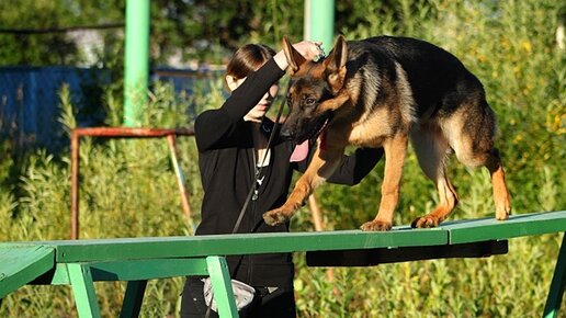 Навык подразумевает, что по команде «Вперед!» и направляющему жесту кинолога собака должна самостоятельно проходить по бревну (буму). Начинать дрессировки надо на учебном буме, где бревно заменено широкой доской. Дрессировщик держа собаку у левой ноги, подводит её к буму. Правой рукой взяв поводок около ошейника и подавая команды «Вперед!», «Бум!», он легко подтягивает поводок и побуждает собаку взойти по доске откоса на бум, сопровождая ее движение поощрением «Хорошо, бум!». Как только собака взойдет на бум, следует ее ласково поощрить...