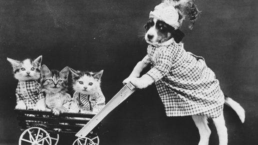 Когда мы сегодня залипаем на смешных котиков и собак в ленте, кажется, что это изобретение цифровой эпохи. Но на самом деле все это уже было - просто без экранов, лайков и комментариев. В начале XX века жил фотограф по имени Гарри Уиттер (Harry Whittier Frees). Он делал то, что сейчас назвали бы стопроцентным вирусным контентом: снимал котят, щенков и кроликов, одетых в человеческую одежду. Животные у него учились в школе, работали поварами, играли на музыкальных инструментах, ссорились, мирились и вели себя так, будто это маленькие люди...