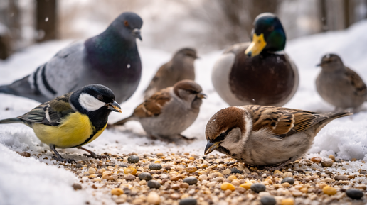 Городские птицы давно живут рядом с человеком, но это не значит, что любая еда с нашего стола им подходит. Более того, именно «человеческая» пища чаще всего становится причиной болезней и сокращения жизни пернатых. Чтобы кормление действительно помогало, важно учитывать вид птицы. У воробья, голубя и утки — разное пищеварение и разные потребности. Воробьи — одни из самых распространённых городских птиц. В природе они питаются семенами трав, зёрнами и насекомыми. Лучше всего им подходят: Воробьям особенно вреден хлеб...