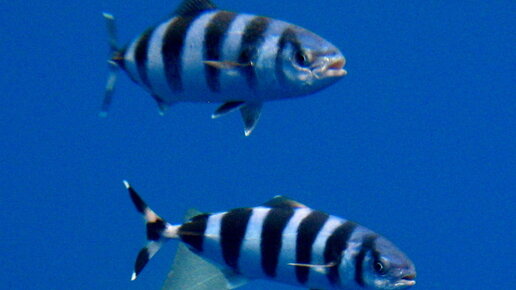 Naucrates ductor, лоцман, относится к семейству ставридовых, отряду колючепёрых костистых рыб, Sеlасhii. К этому же отряду относятся акулы, химеры и скаты. Длина тела рыбы-лоцмана составляет около полуметра. Отличительными чертами являются три короткие колючки, заменяющие спинной плавник, а также специфические кили из чешуек, находящиеся на хвостовом стебле. Окраска рыбы обычно белая с синеватым отливом, на теле 5-7 поперечных темных полос. Обычные места обитания лоцмана — тропические и субтропические моря, иногда встречается в умеренных водах...