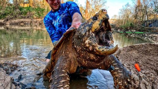 Грифовая черепаха - древняя рептилия с очень мощными челюстями!