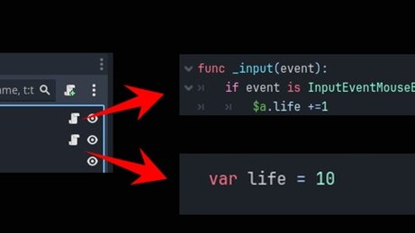 В Godot 4 убрали привычный многим Setget. Теперь это просто отдельно Set и Get :) И в данной статье обсудим каким образом это работает в Godot 4. Суть осталась той же - мы получаем отклик при изменении или обращении к переменной. Для примера возьмем точно такую же сцену как в случае с Godot 3. Внутри сцены леибл и нода «А» . В скрипте на ноде «А» добавляем переменную LIFE. На корневой ноде пишем скрипт, который будет увеличивать на одну единицу переменную LIFE в ноде «А» при нажатии на кнопку мышки...