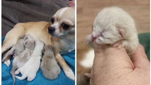 Новогодняя история из Сибири: Чихуахуа стала кормящей матерью для трёх бездомных котят