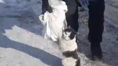 Живодёр завязал скотчем кошку в мешке и выбросил в мусорку в Чите