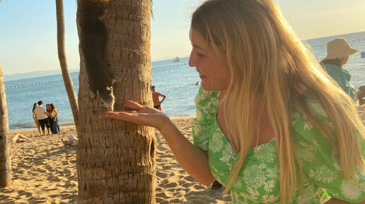 Я обожаю кормить белок с ладони ! И если наши сибирские белки спускаются к тебе с осторожностью и надо помолиться пяти богам, чтобы белка выбрала именно твою ладонь😅 То в Тайланде белки решительнее и наглее! Вплоть до того, что если мы будет отдалять ладонь от белки, она своими лапками потянет ее обратно ! Так и случилось с моим мужем, он решил пошутить и, когда белка, поняла что орешки вместе с его ладонью отдаляются от неё - схватилась когтями его за пальцы, да так, что из одного пальца у него...