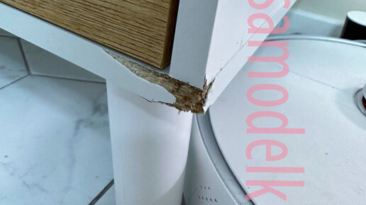 Что делать, если мебель погрызла собака? В каждой ситуации нужно искать свой способ реставрации мебели. На данном примере объясняю максимально простым языком. На фото собака прогрызла угол тумбы. Повреждение незначительное, поэтому мы можем восстановить геометрию угла любой шпаклевкой с хорошей механической прочностью. Сначала отрываем поврежденный кант по всей длине торца мебельной панели. Восстанавливаем шпаклевкой геометрию мебельной панели. Шпаклевку следует просушить, согласно инструкции на упаковке, и, если необходимо, убрать неровности шпаклевки наждачной бумагой...