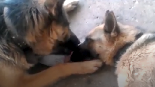 Потрясающая реакция собаки-отца, когда его самка рожает их щенков