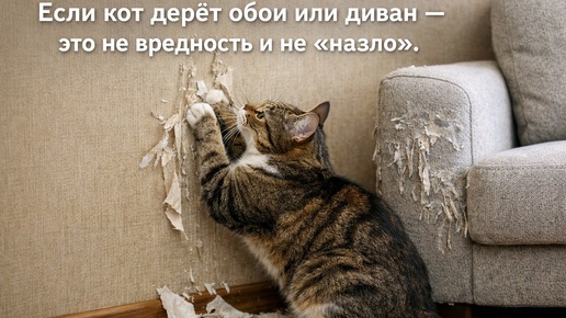 Если ваш кот дерёт обои или царапает диван — не спешите обвинять его в вредности или упрямстве. Это естественное поведение, заложенное природой! Кошки точат когти не просто так: это помогает им метить территорию своим запахом, снимать стресс и поддерживать когти в хорошем состоянии. Когда кот царапает мебель, он словно говорит: «Это моё место». Поэтому ругать питомца бесполезно — гораздо эффективнее направить его энергию в нужное русло. Почему кот выбирает именно диван или обои? Вот несколько причин: - Там удобно тянуться и выгибать спину...