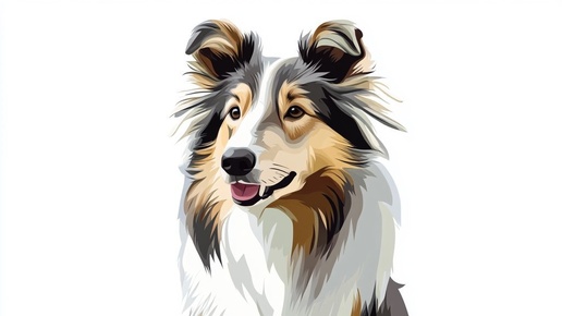 Создано на основе запроса: vector image of a collie dog, detailed, flat icon style, realistic, colorful, clean lines, white background, no