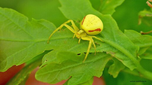 Цветочный паук, или как его еще называют - мизумена косолапая (Misumena vatia), относится к паукам-бокоходам (Thomisidae) и является, единственным представителем рода Misumena, обитающим на территории Поволжья (остальные обитают в тропиках)...
