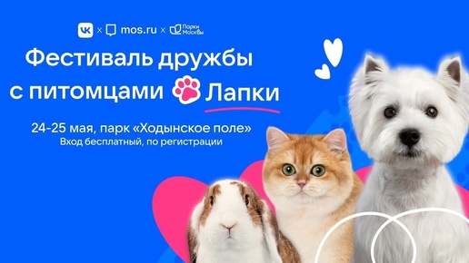 Фестиваль пройдет 24 и 25 мая в парке «Ходынское поле». Гостей ждут два дня развлечений для питомцев и их хозяев — можно прийти со своим четвероногим другом и вместе принять участие во всех активностях: 📌Послушать выступления артистов — Антоха МС, SERYABKINA, Аня Pokrov, RASA, Milana Star и другие звезды. 📌Пообщаться с pet-блогерами — HOOOTDOGS, Корги Луна, Шпиц Касси, Чапитосики и их хозяйки расскажут о ведении блога. 📌Узнать больше о воспитании, уходе и здоровье питомцев на лекциях и дискуссиях с экспертами — зоопсихологами, ветеринарами, кинологами, волонтерами и другими...