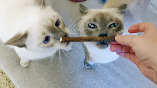 Обработаны эти палочки кошачьей мятой или чем-то еще, от чего коты погрузились в чрезмерную жизнерадостную активность