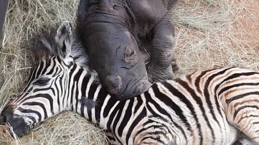 Умилительные фото осиротевших детенышей носорога и зебры, которые стали лучшими друзьями