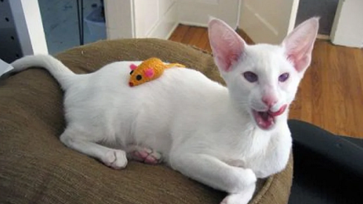 Кошки-альбиносы встречаются очень редко. Они отличаются от просто белых кошек. Кошки-альбиносы рождаются без пигментации кожи, глаз или шерсти. Причина, по которой их глаза розовые, заключается в том, что без пигмента через зрачок глаза видны кровеносные сосуды. Кошки-альбиносы чаще всего встречаются среди снежных бенгалов и восточных пород, таких как сиамские. Несмотря на то, что сиамские котята рождаются абсолютно белыми, под воздействием окружающей среды и климата у них начинает формироваться цвет шерсти...