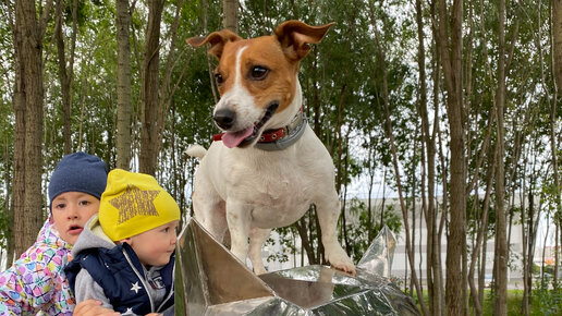 Fat jack Russell and the kids. Жирный джек рассел и дети